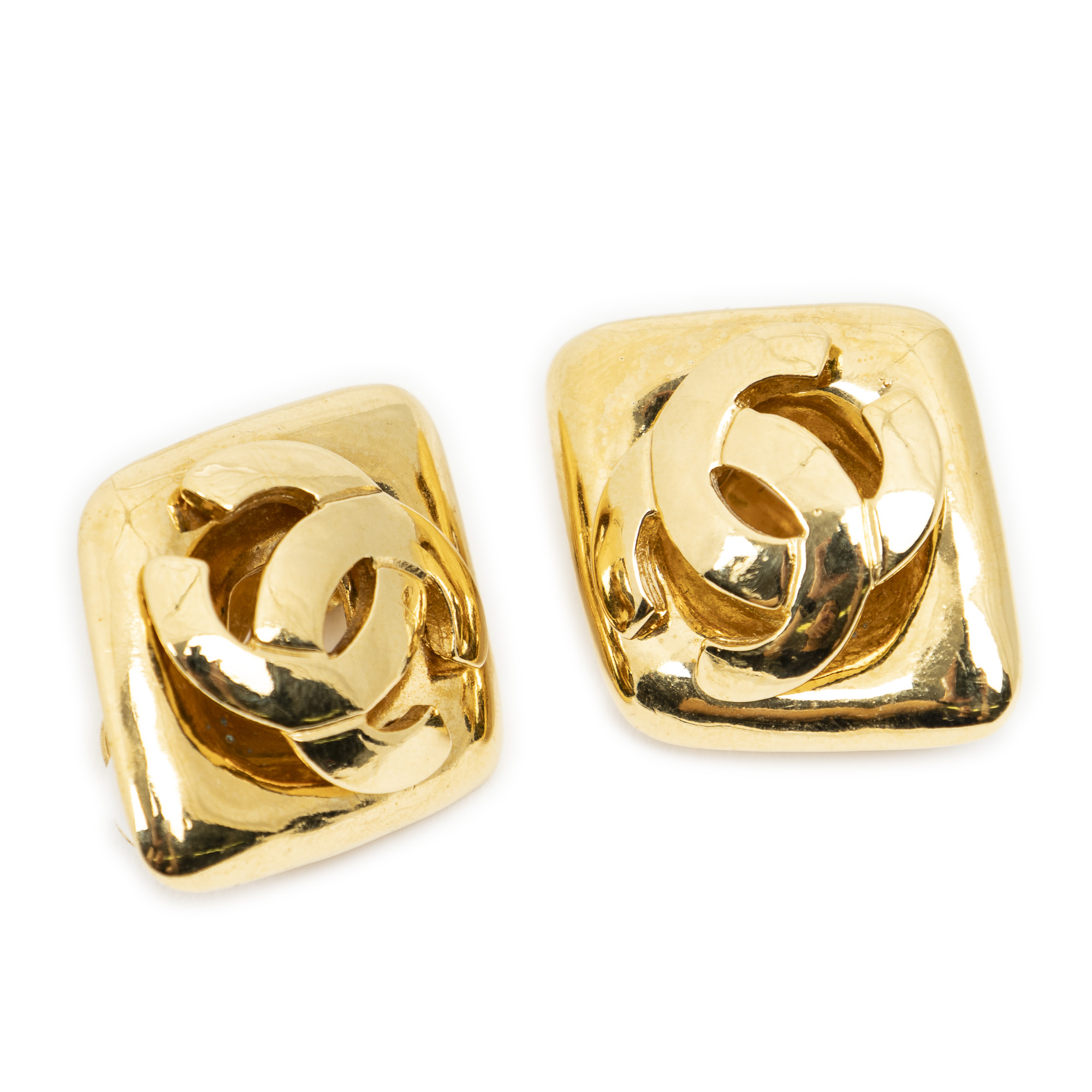 Chanel Earrings CC Diamond Shape Clip On Earrings in Gold Gold Plated and Gold Plated hardware. The product is in Excellent Condition (A).