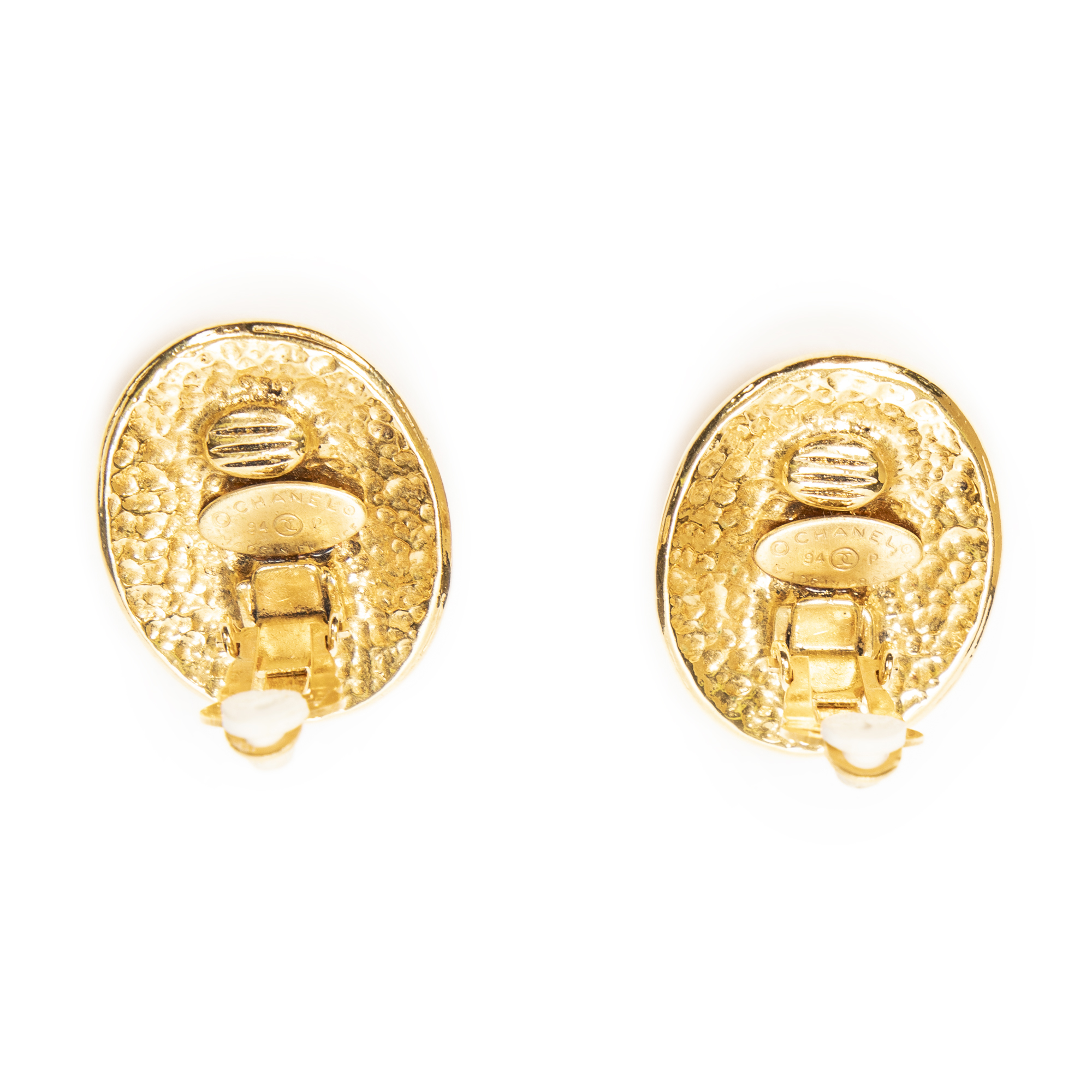 Chanel Earrings CC Oval Clip On Earrings in Gold Gold Plated and Gold Plated hardware. The product is in Excellent Condition (A).
