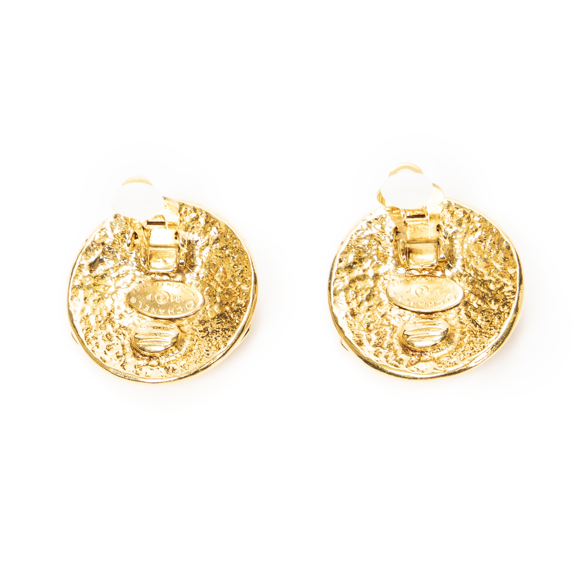 Chanel Earrings CC Round Clip On Earrings in Gold Gold Plated and Gold Plated hardware. The product is in Excellent Condition (A).