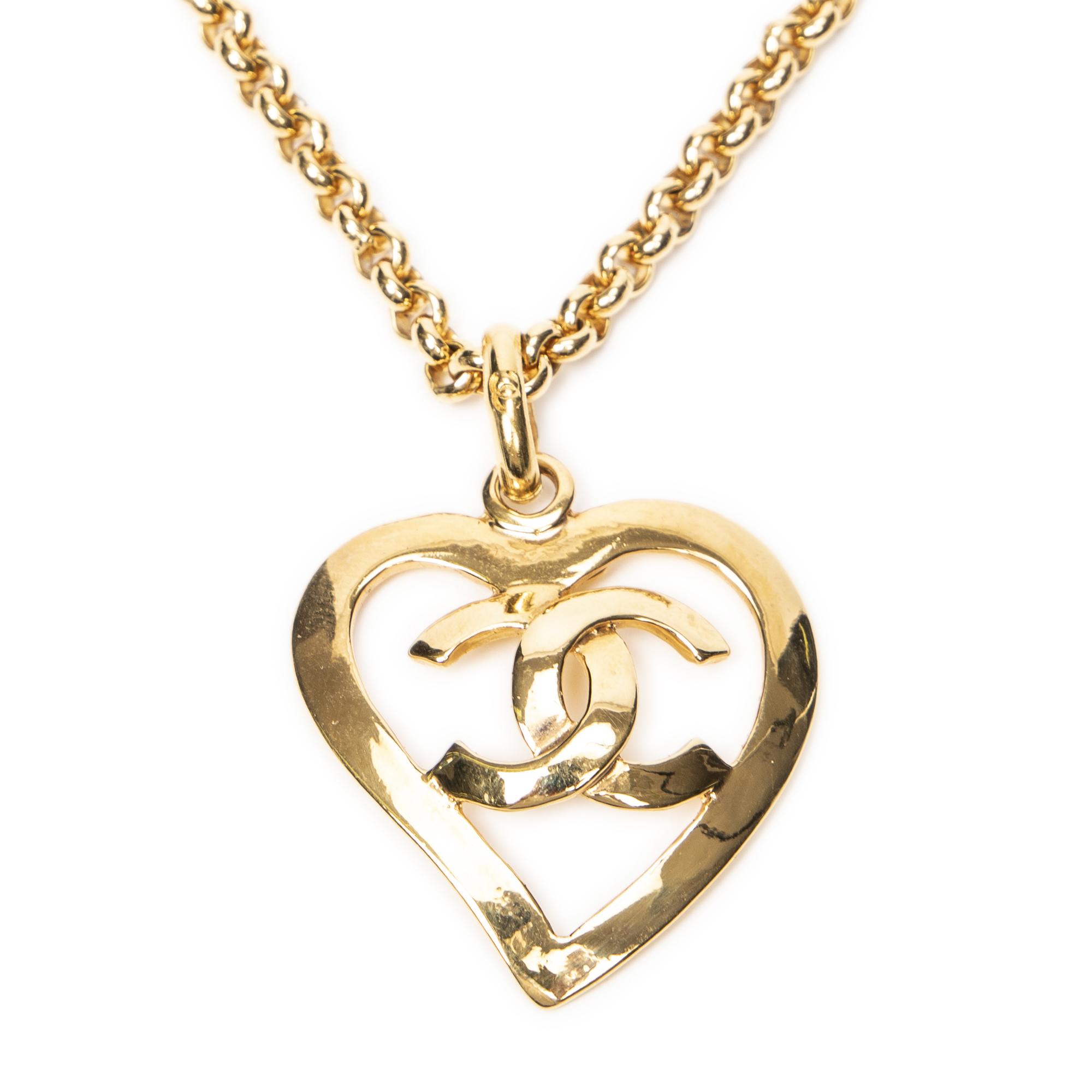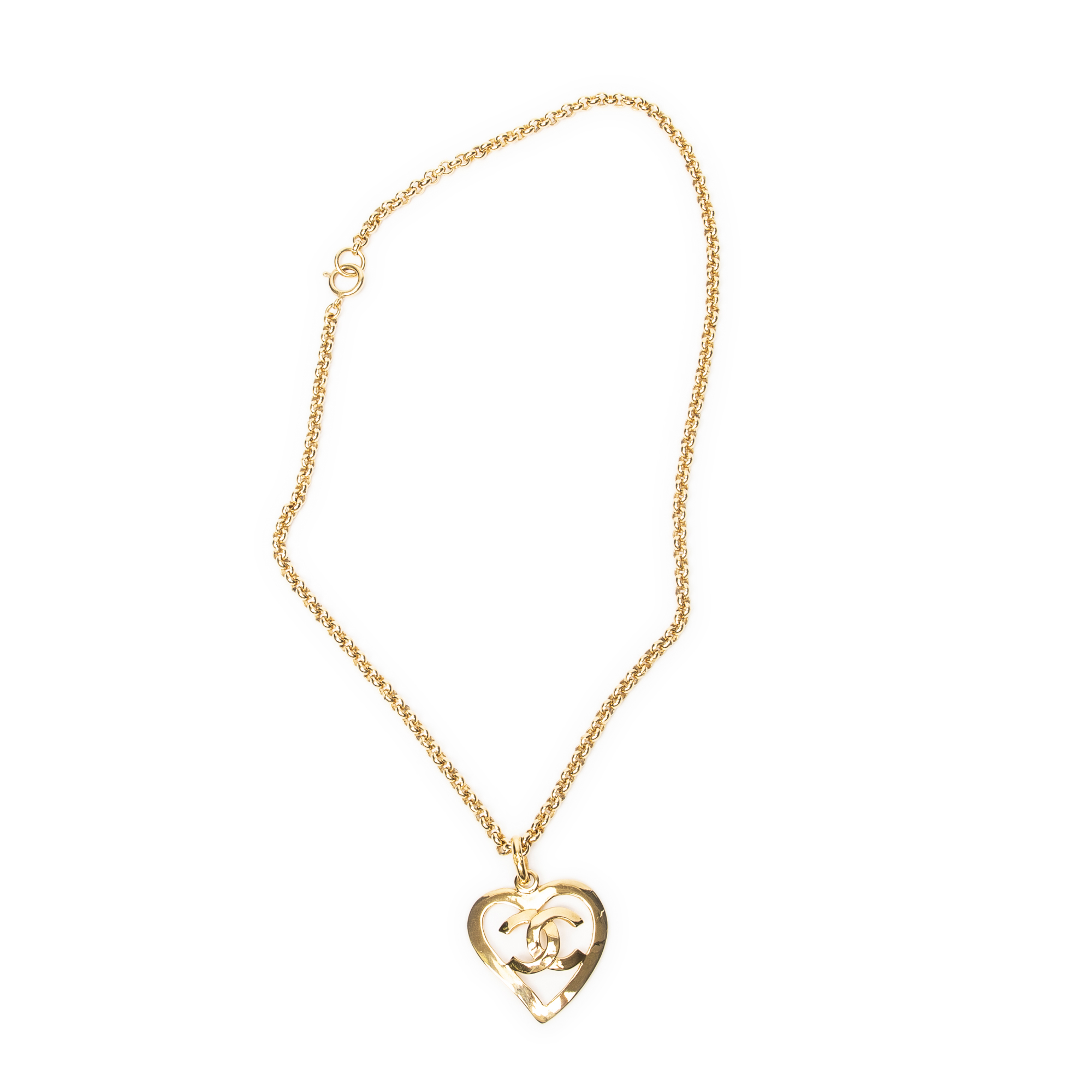 Chanel Necklace CC Heart Pendant Chain Necklace in Gold Gold Plated and Gold Plated hardware. The product is in Excellent Condition (A).
