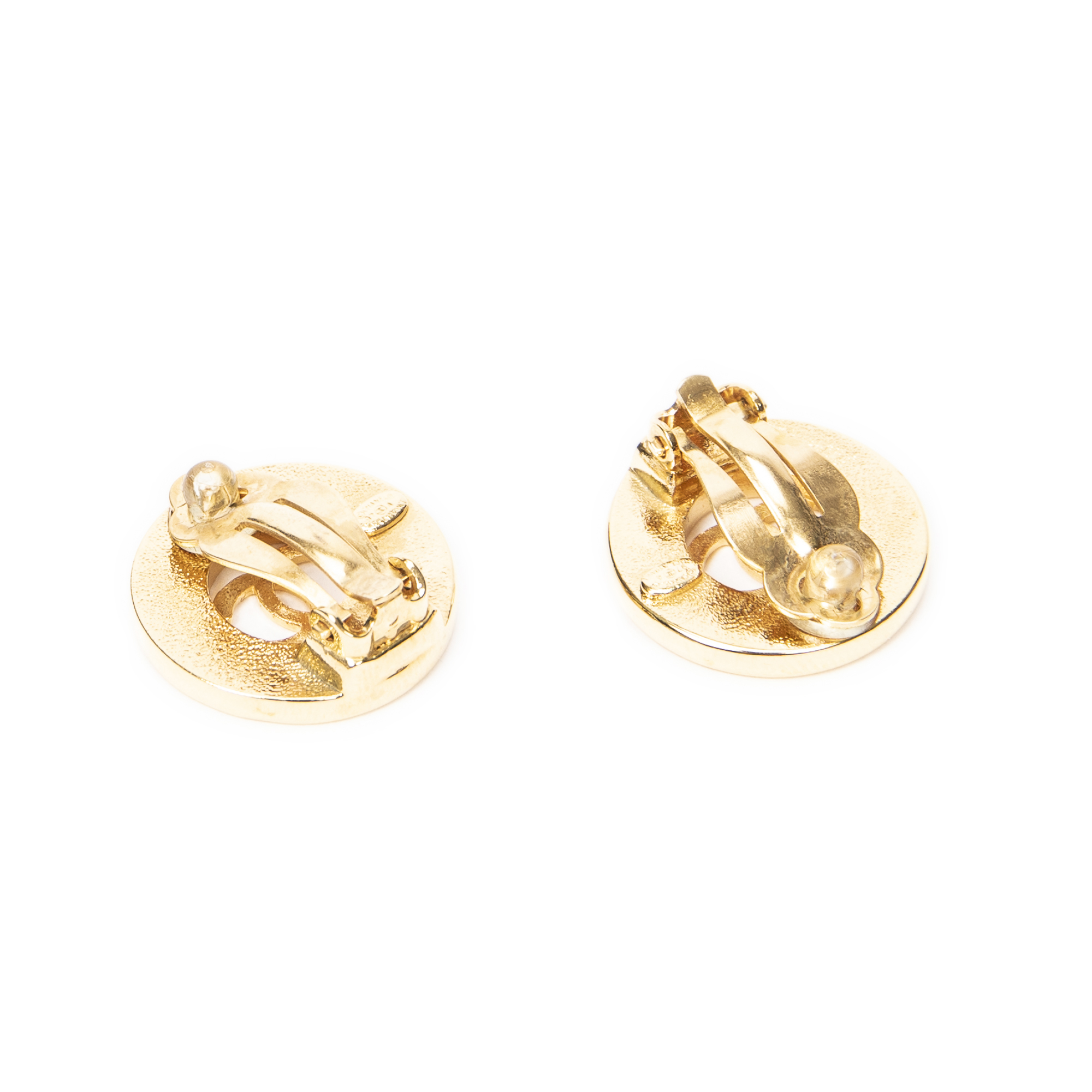 Chanel Earrings CC Round Clip On Earrings in Gold Gold Plated and Gold Plated hardware. The product is in Excellent Condition (A).
