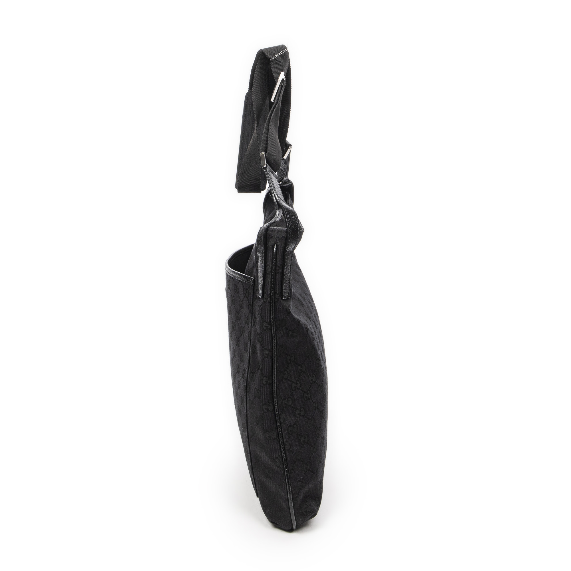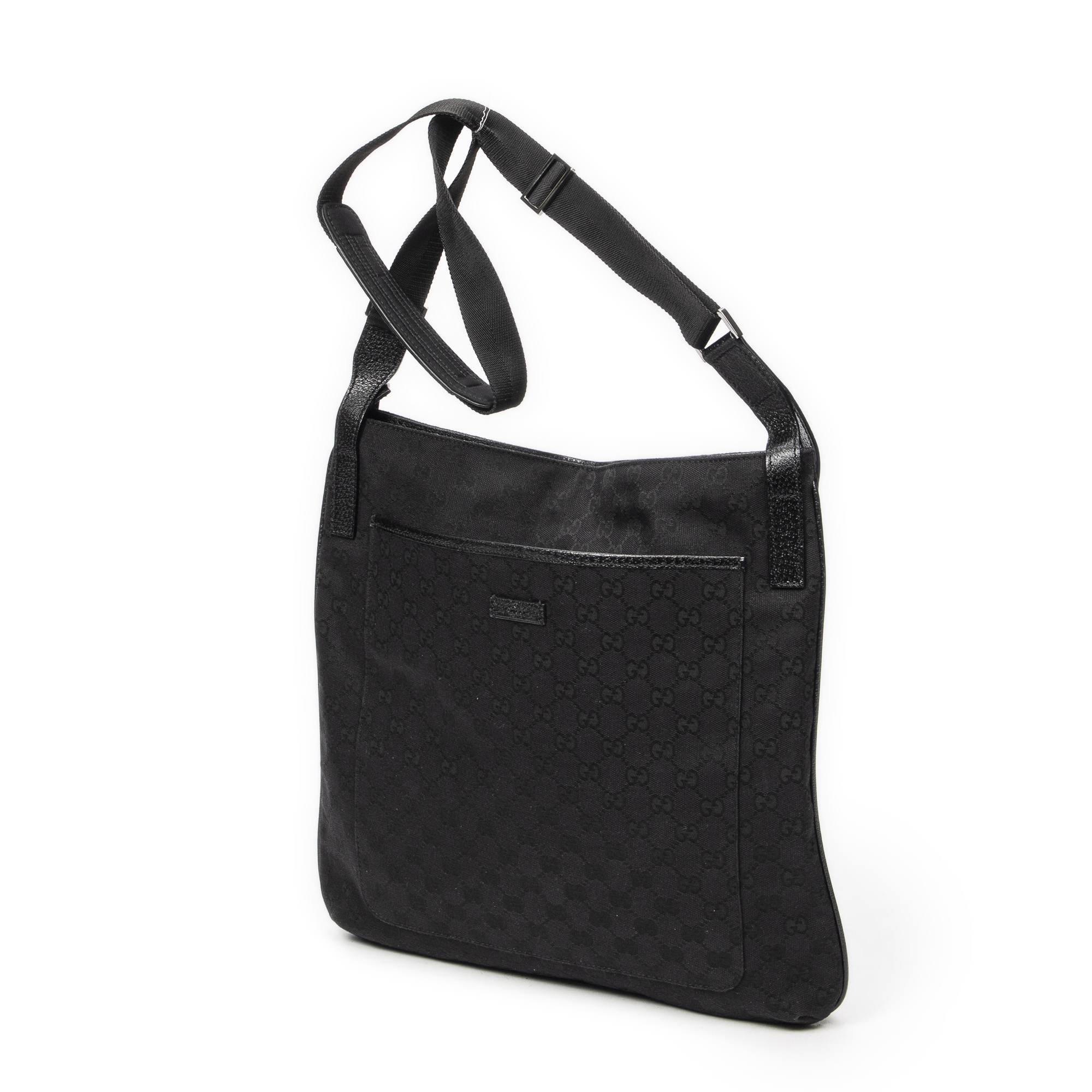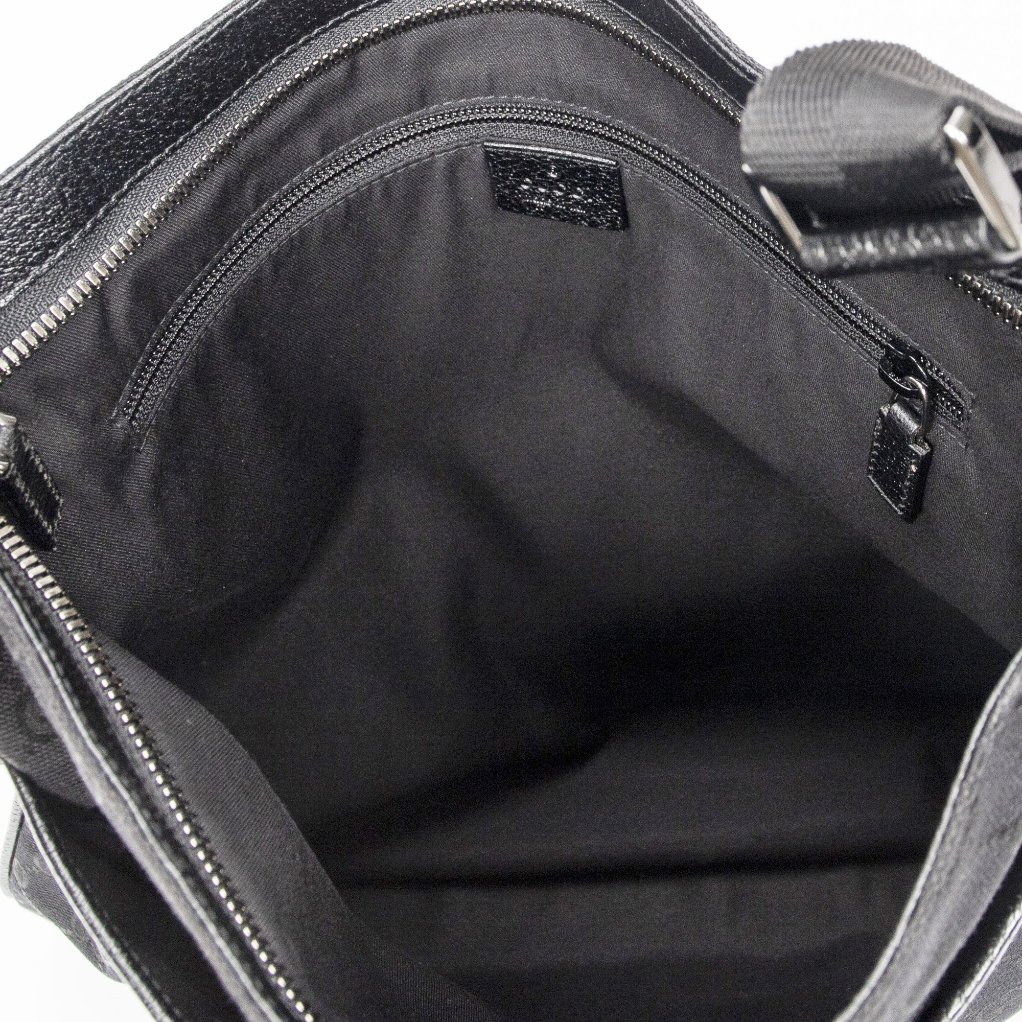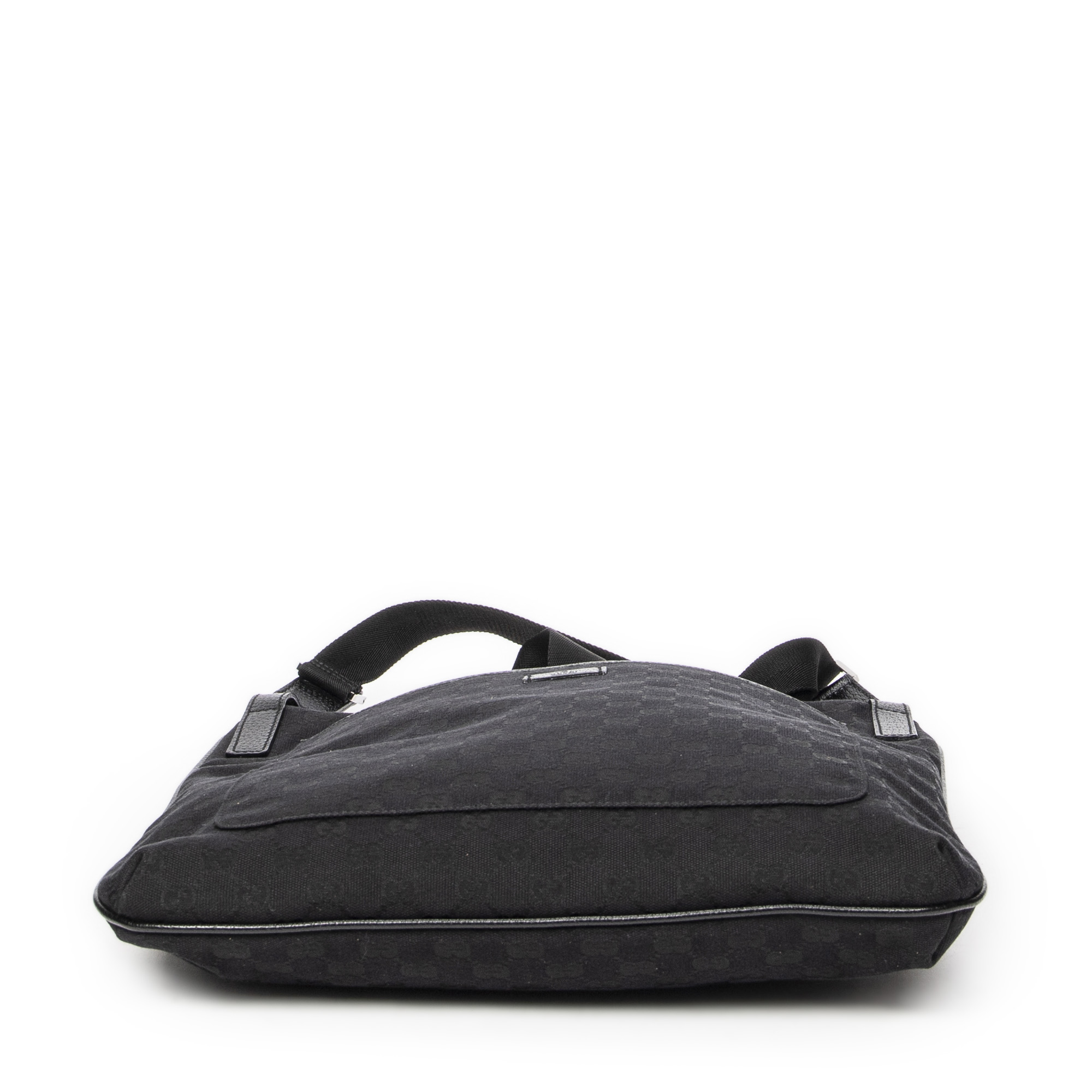 Gucci Shoulder Bag Large Flat Messenger in Black Monogrammed Canvas and Silver hardware. The product is in Excellent Condition (A).