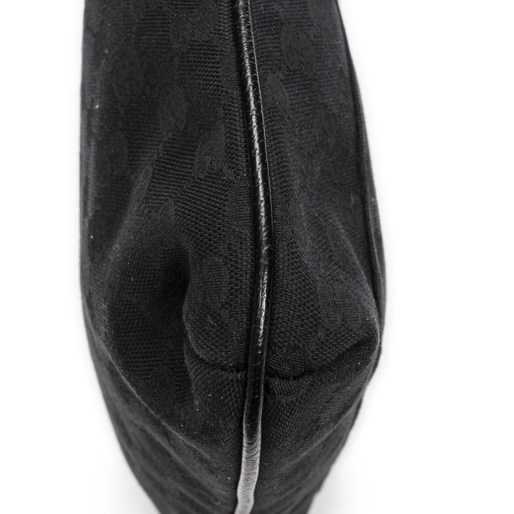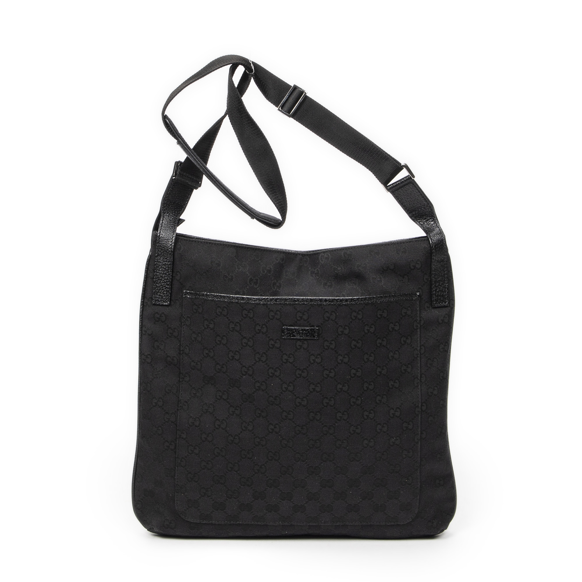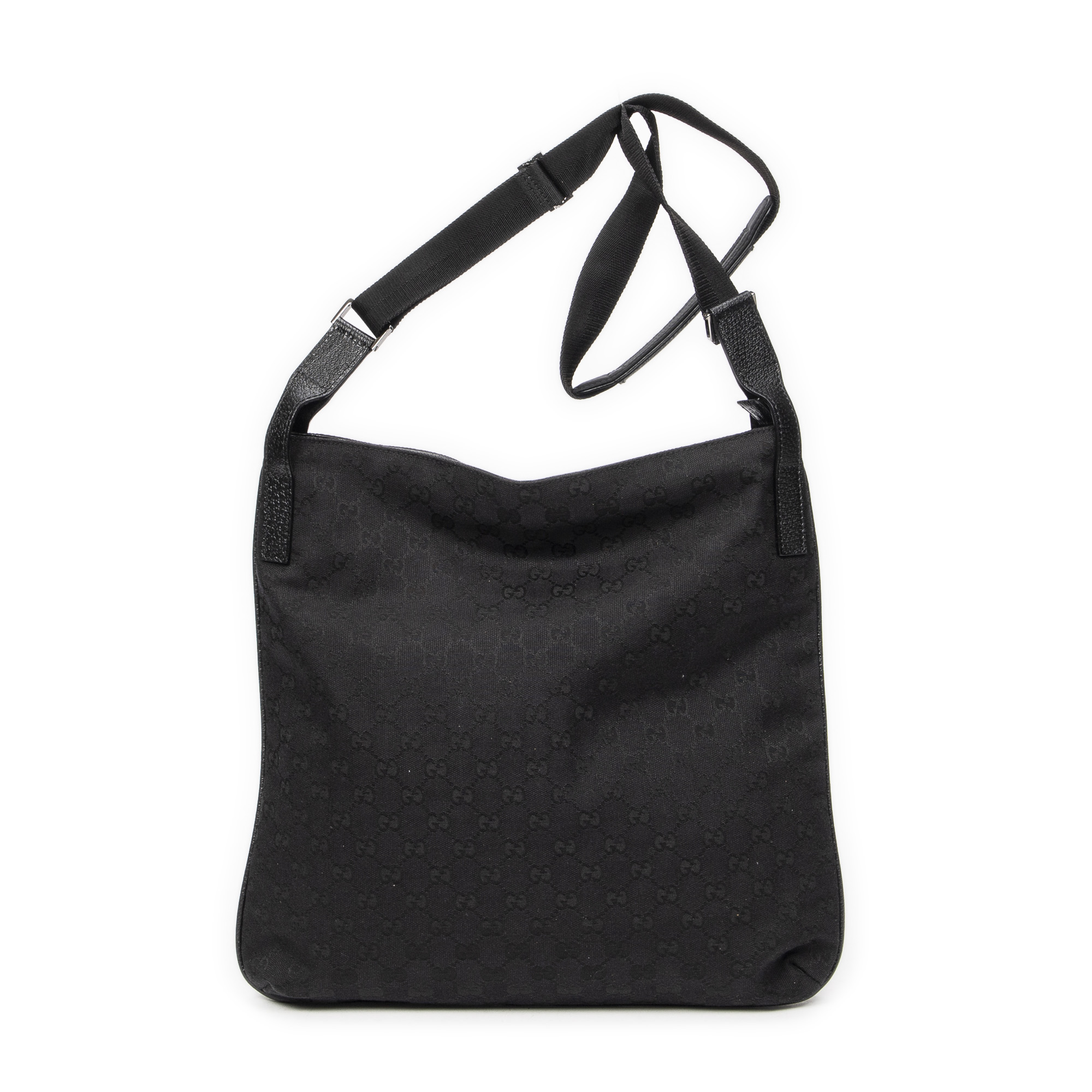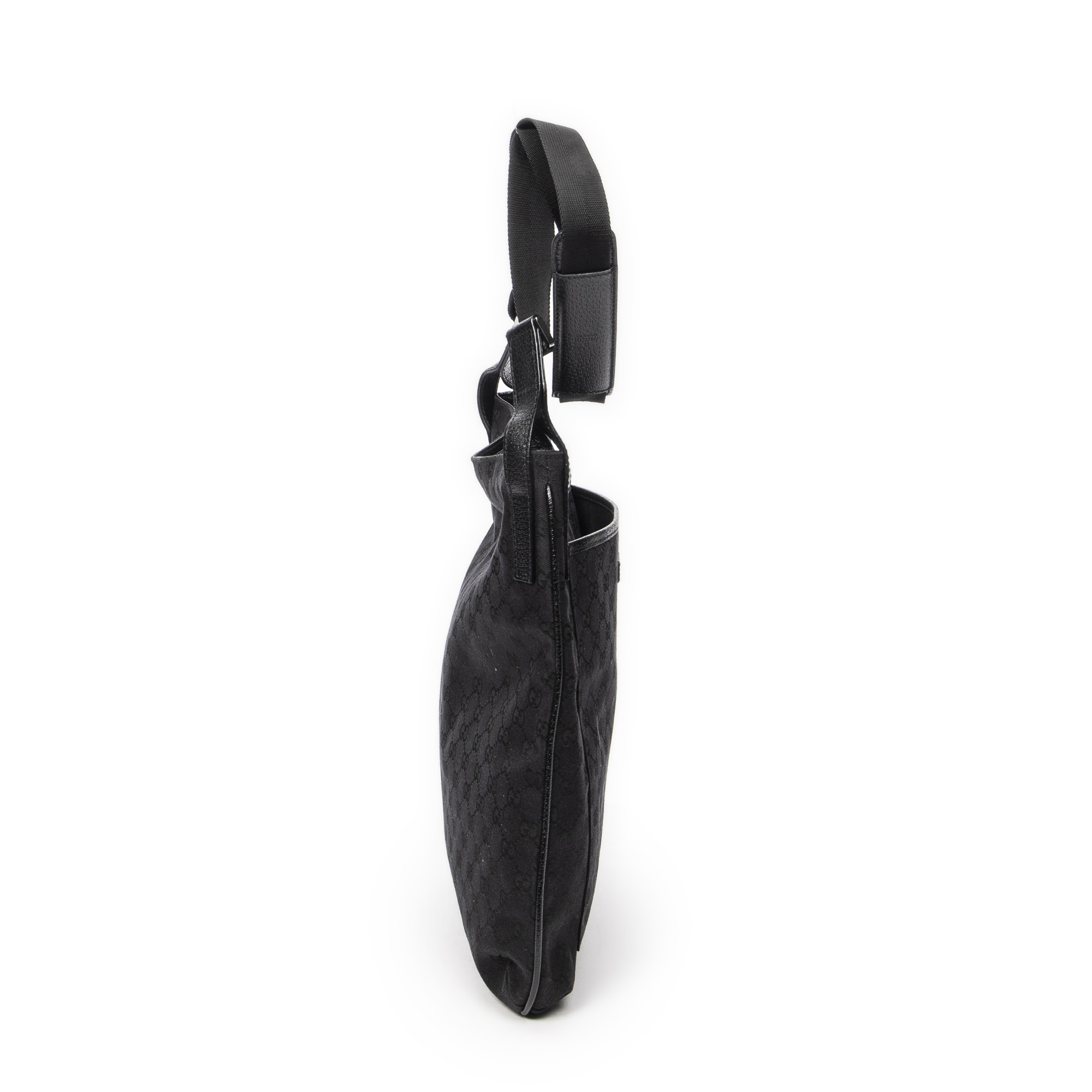 Gucci Shoulder Bag Large Flat Messenger in Black Monogrammed Canvas and Silver hardware. The product is in Excellent Condition (A).