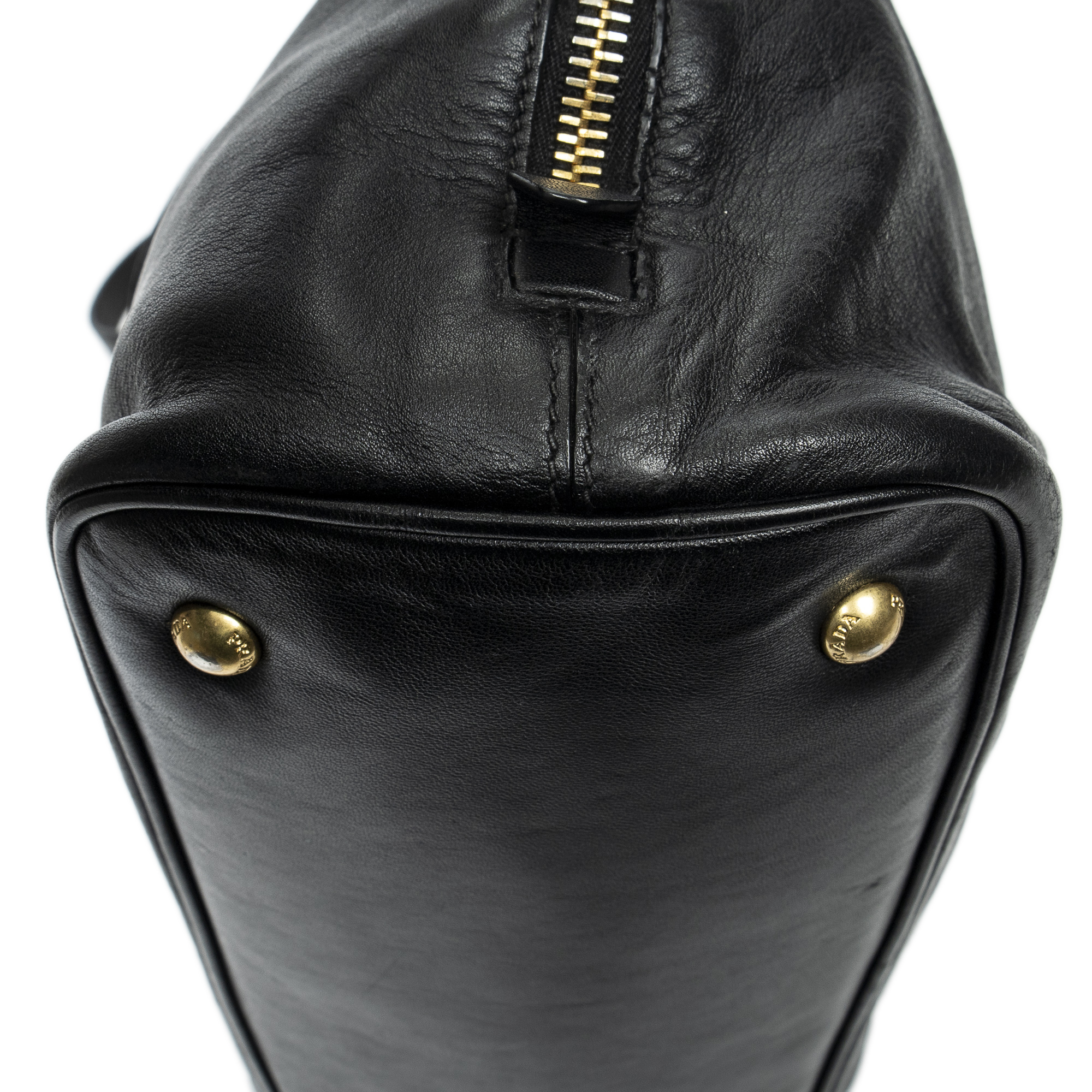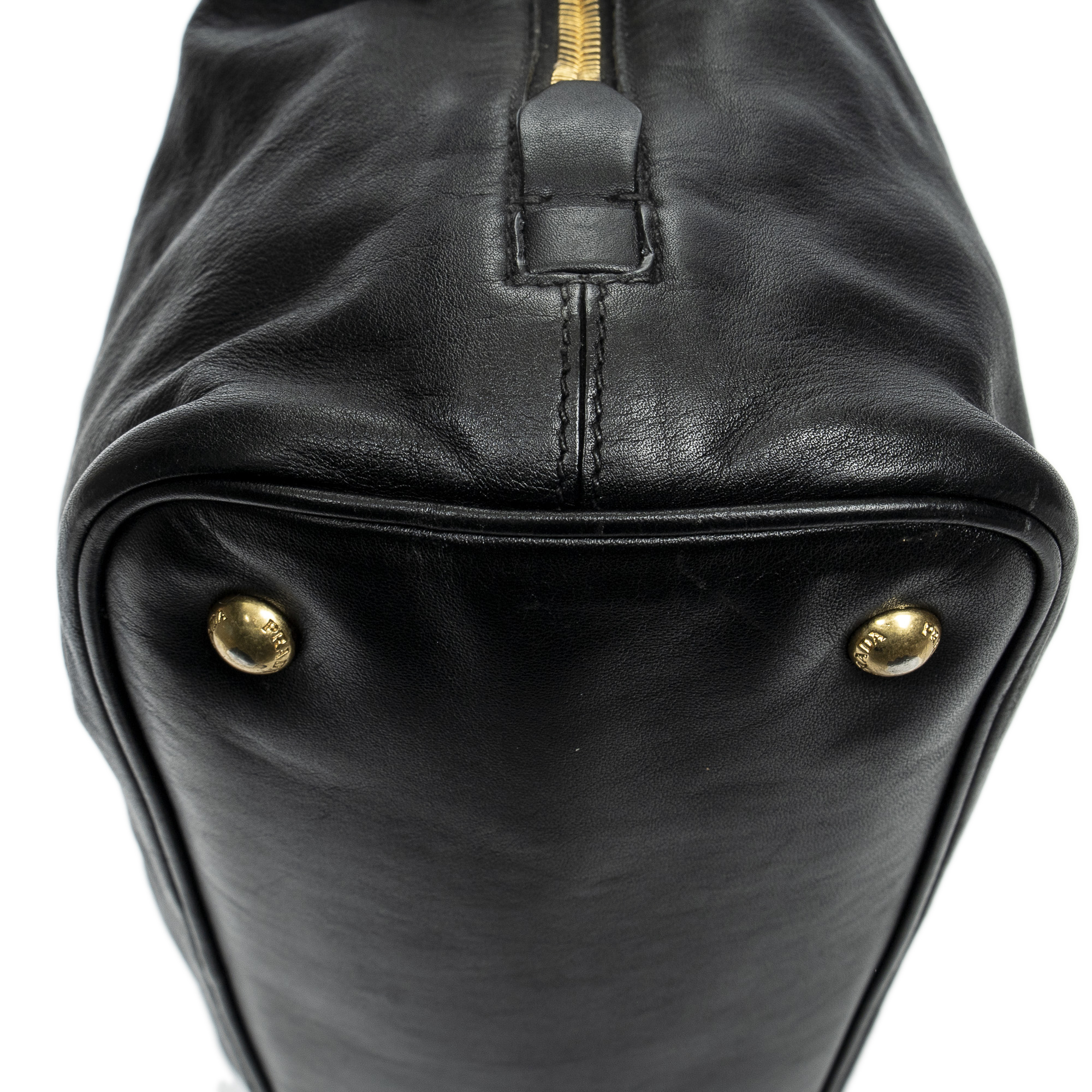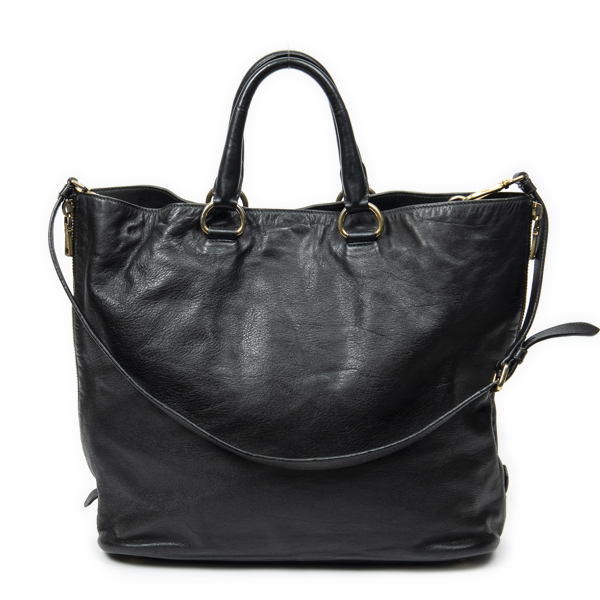 Prada Shoulder Bag Large Open Tote in Black Vitello Lux Leather and Gold hardware. The product is in Excellent Condition (A).