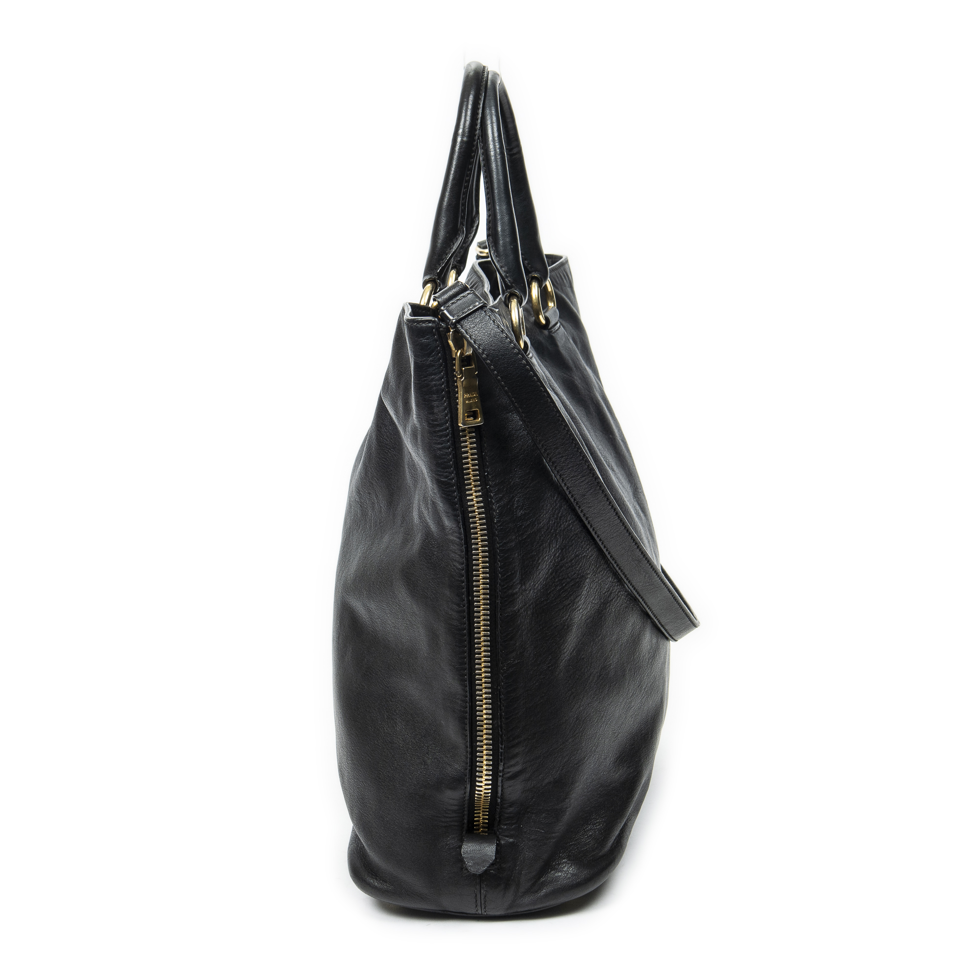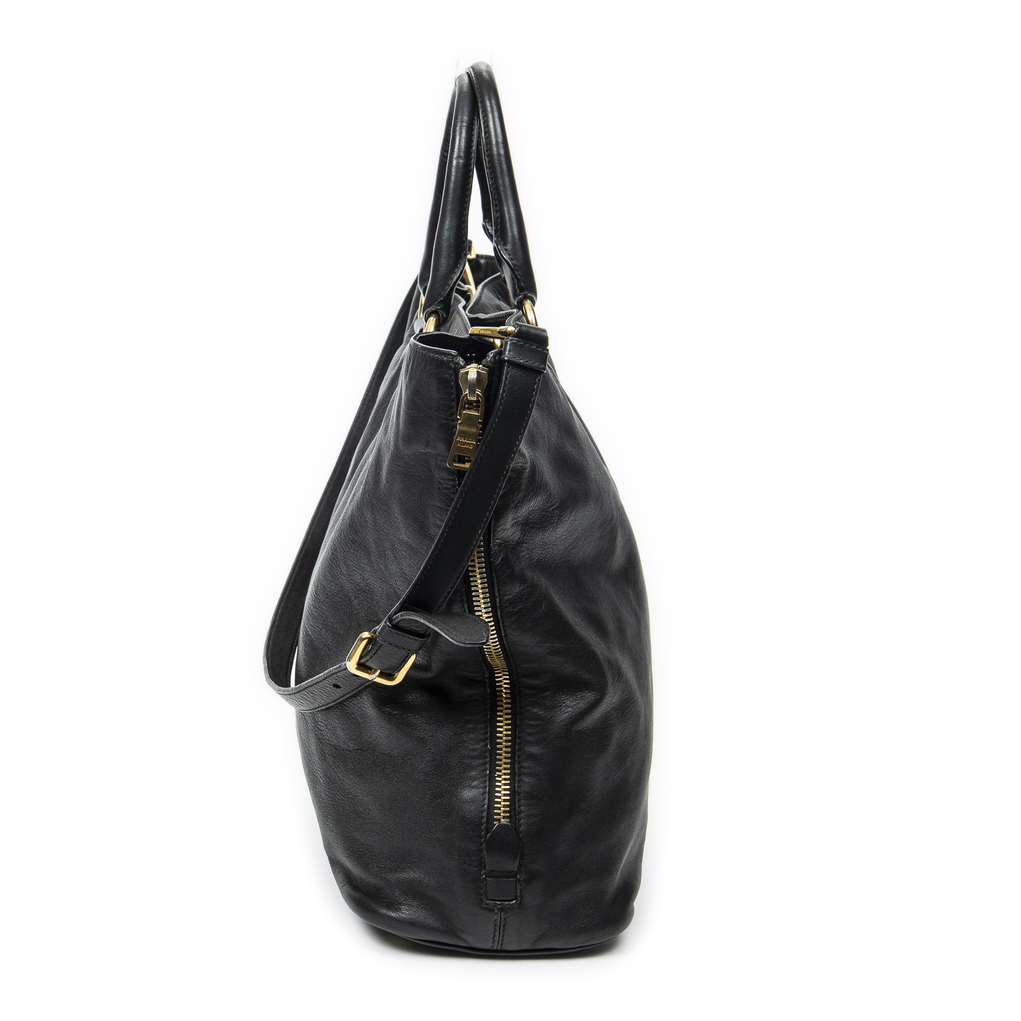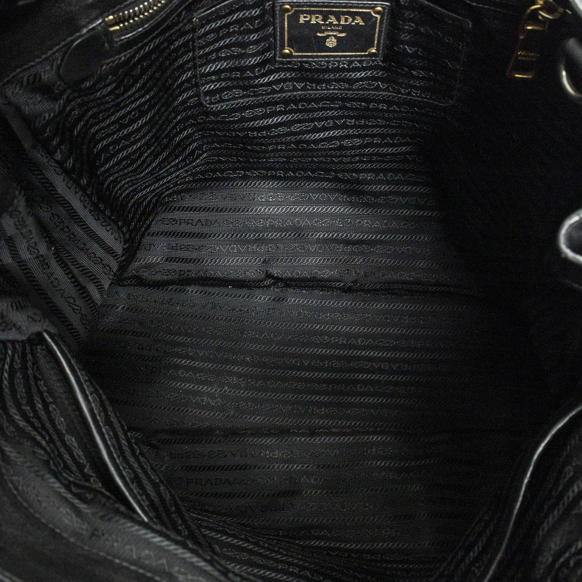Prada Shoulder Bag Large Open Tote in Black Vitello Lux Leather and Gold hardware. The product is in Excellent Condition (A).