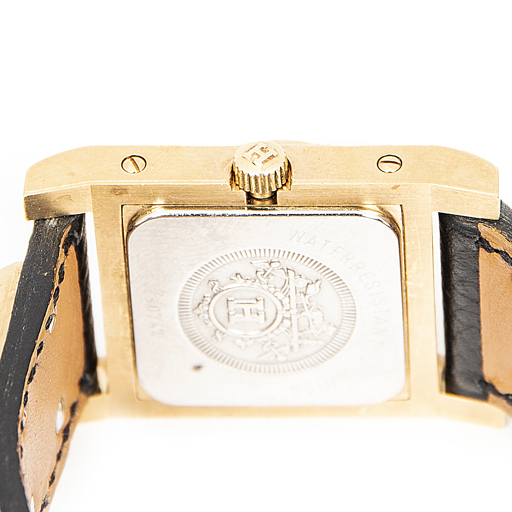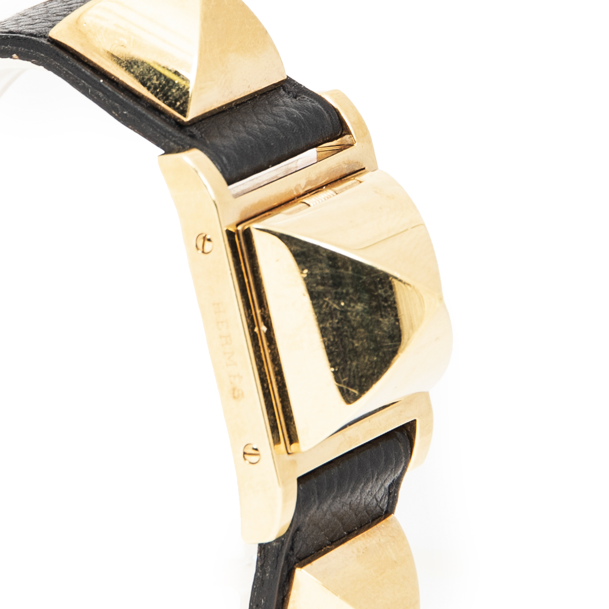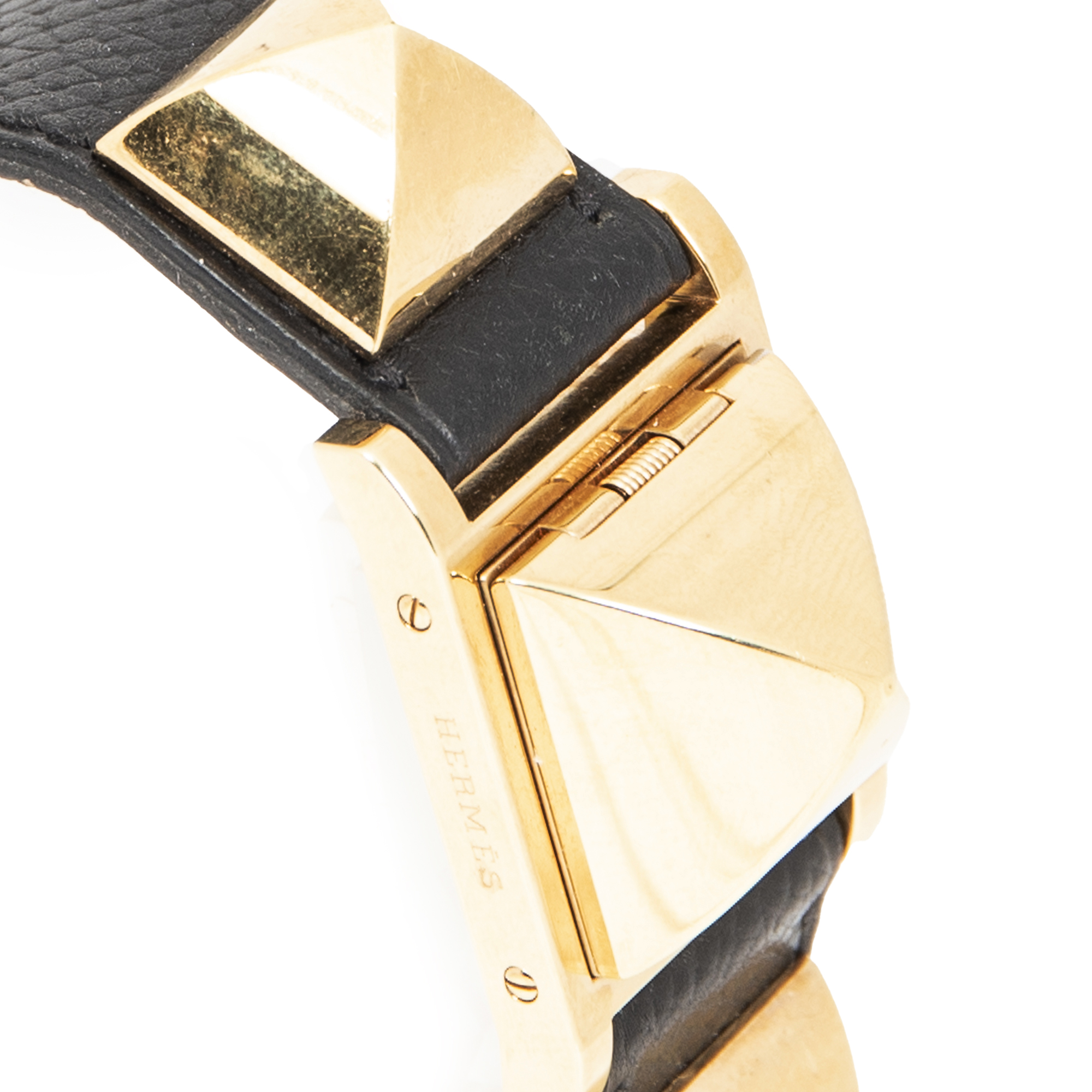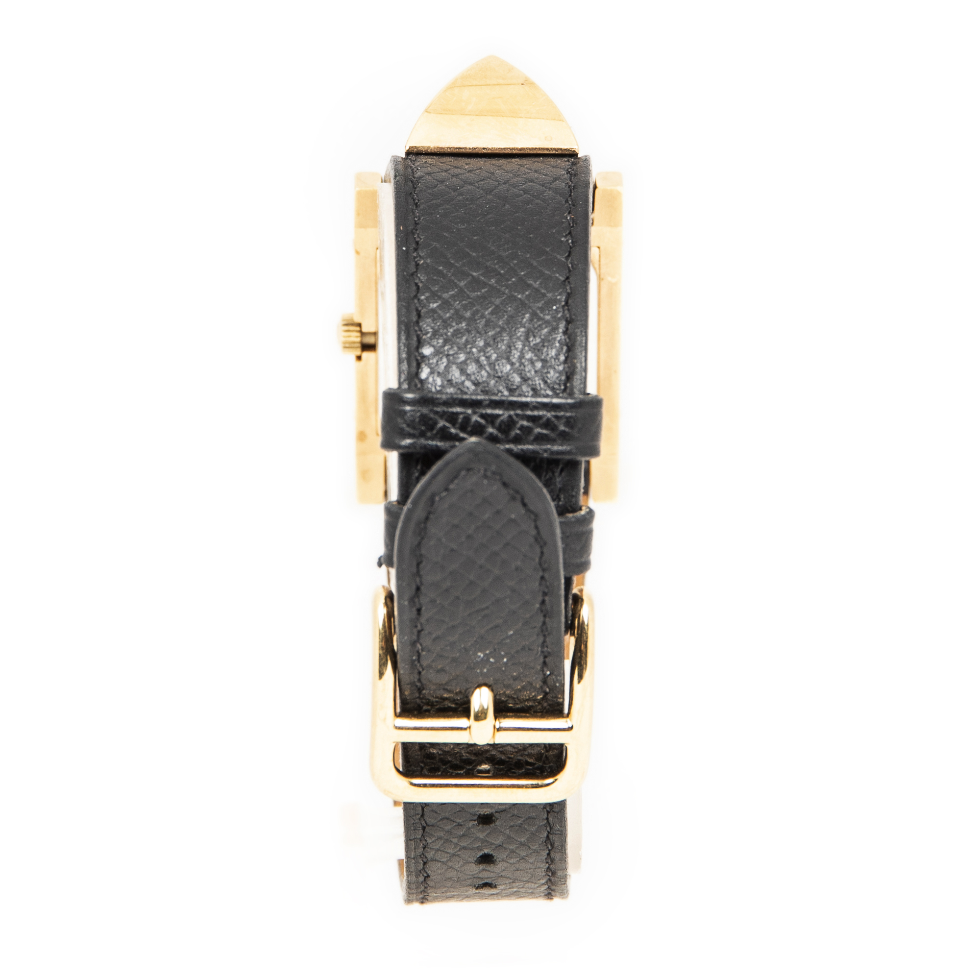 Hermès Watch Medor Watch in Black Gold Plated/Courchevel Leather and White Dial hardware. The product is in Excellent Condition (A).