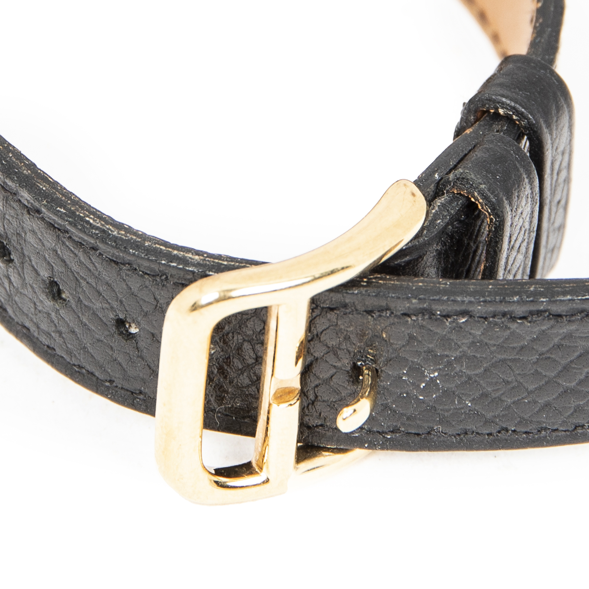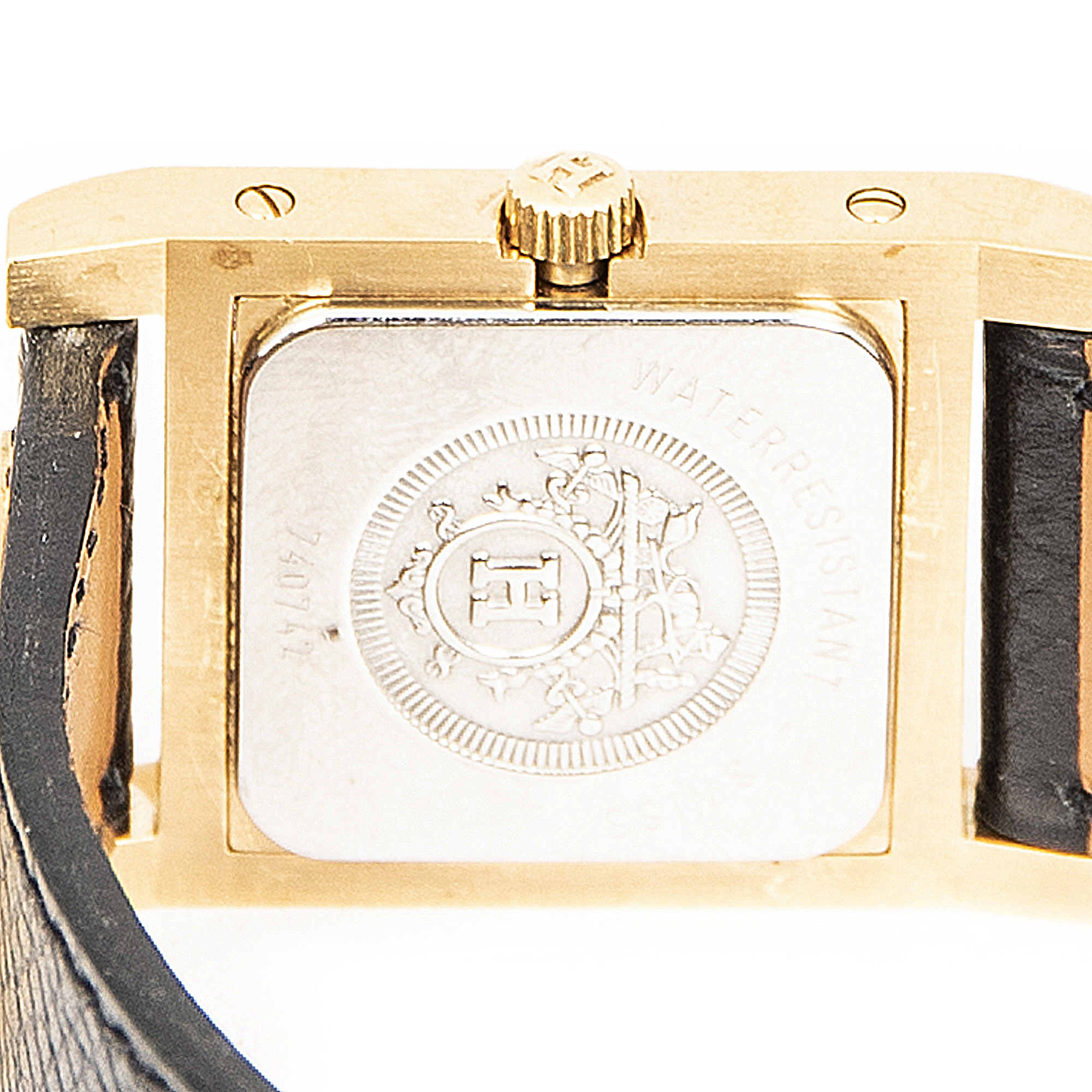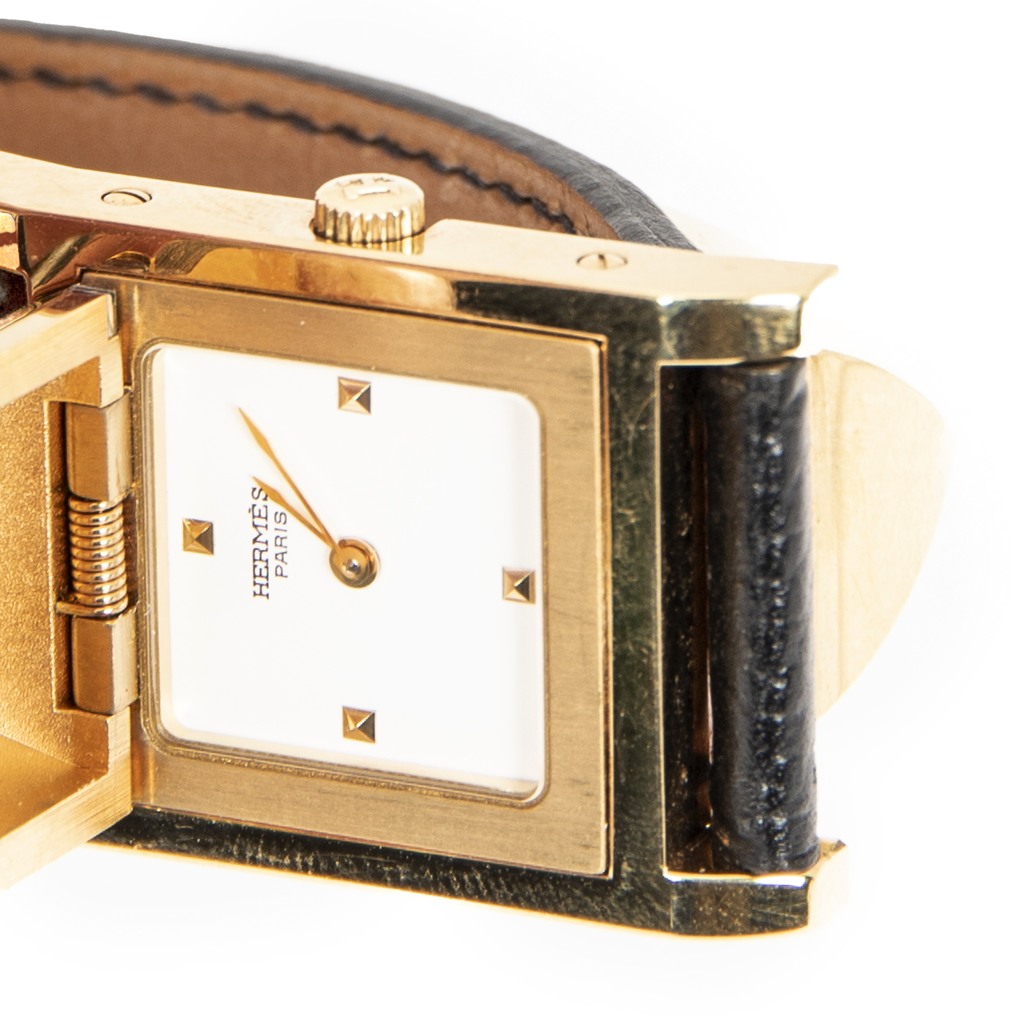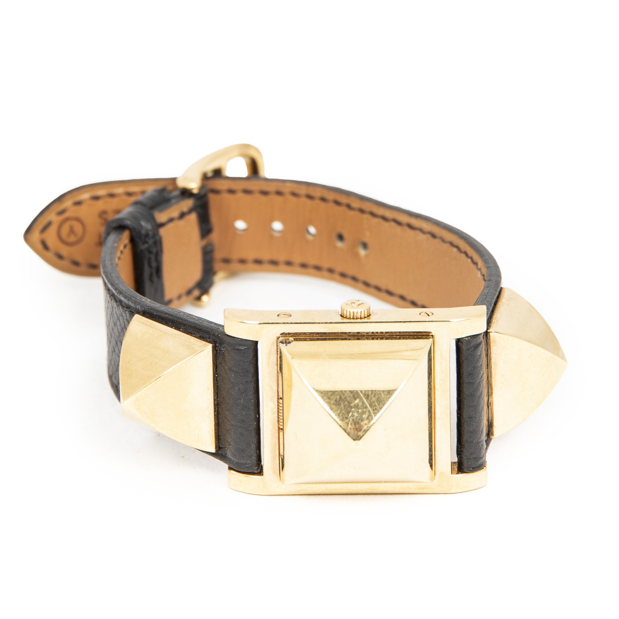Hermès Watch Medor Watch in Black Gold Plated/Courchevel Leather and White Dial hardware. The product is in Excellent Condition (A).